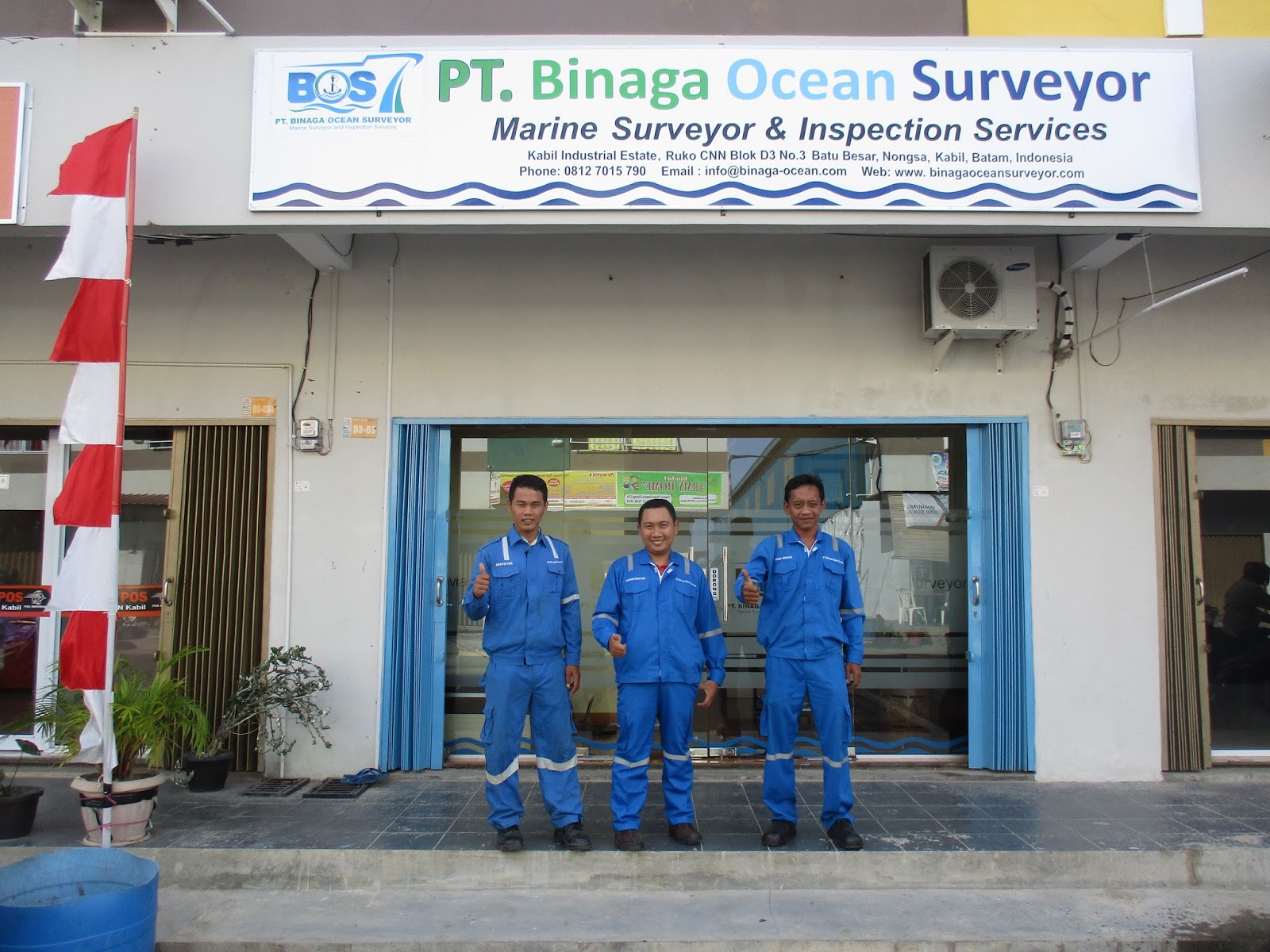 PT Binaga Ocean Surveyor (BOS) adalah perusahaan yang bergerak di bidang jasa marine survey. PT Binaga Ocean Surveyor Bisa melaksanakan Survei Kapal Dimana Saja, Tidak hanya di Batam, PT. BOS ini juga bisa melayani pekerjaan survey ke seluruh wilayah pelabuhan di Indonesia, perusahaan ini telah memiliki cabang di Padang dan beberapa perwakilan kantor di Jakarta, Medan, Lampung, Surabaya, Dumai, Balikpapan, Samarinda, Banjarmasin dan Makassar.